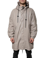 MSGM Beige Full Zip Hooded Long Sleeves Casual Coat Jacket