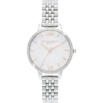 Type of mechanism: QUARTZ.Display: ANALOGICAL.Material Of Case: STAINLESS STEEL.Colour Of Case: SILVER.Material Of Bracelet: STEEL.Colour Of Bracelet: SILVER.Dial Colour:SILVER.Glass type: MINERAL.Clousure: Blot with button.Water resistence: 1 ATM.Diameter dial: 34 MM.Special Functions:Glitter sphere