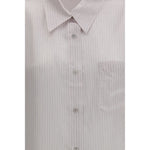 The Forever Shirt by Our Legacy offers a refined take on the classic striped silhouette, balancing tailoring precision with modern lightness. Crafted from a soft cotton-blend with a touch of fluid cupro, it features a subtle striped pattern that adds depth and texture. Finished with a classic collar, long sleeves and a button-down front, it’s a versatile piece suited to understated, contemporary styling.