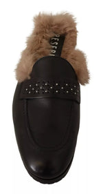 Peserico Black Leather Fur Perforated Slip On Flats Shoes