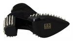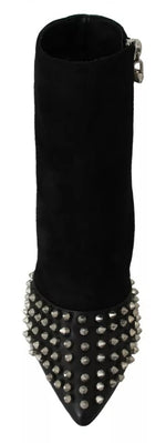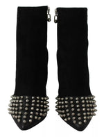 Philipp Plein Black Suede Studded Heels Ankle Boots Shoes