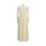 The long lace Dress by Rabanne is a long-sleeve design crafted from a lace and viscose jersey blend, featuring refined cut-out details. The high neckline and full-length silhouette create an elegant, contemporary look, balancing sensuality and sophistication with the brand’s distinctive aesthetic.