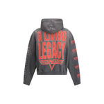 The “Living Legacy Tour” Hoodie by Represent embodies an urban spirit with a bold, contemporary edge. Crafted from a smoky grey cotton blend, it features distressed details and large contrasting logo prints across the front, back, and sleeves. Designed with raglan shoulders and a relaxed fit, it offers both comfort and ease of movement, while the brushed fleece interior provides a soft, cozy feel. Finished with a mini metal logo plaque at the hem, this hoodie merges streetwear attitude with refined, statement-making style.