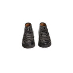Introducing the epitome of bold sophistication, the ‘Roberto Pepe Luxury’ Lace-up Ankle Boots. Crafted from premium calfskin, these Italian-made boots are the ultimate fusion of durability and style. They captivate with a sleek black hue, robust laces through gleaming metal rings, and a chunky, black rubber sole that asserts confidence with every step. Perfect for the trendsetters looking to make a statement.