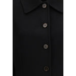 The double faced sculptural Jacket by ROHE is an architectural spring jacket crafted from double-faced wool, defined by a cinched waist and oversized sculptural sleeves. It features four button closures, side-seam welt pockets, and subtle front and back dart detailing, creating a tailored yet sculpted silhouette.
