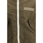 The nylon Jacket by Sacai is a functional and stylish garment with a high collar and double-slider zipper closure, embellished with a button on the collar for added detail. Two large flap pockets on the front offer ample storage space, while the fleece cuffs and hem add comfort and a casual touch. A cotton patch on the front and a zippered pocket on the right sleeve complete the design, creating a mix of practicality and urban style. Perfect for a sophisticated streetwear look.