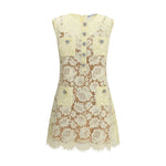 The fine lace mini Dress by Self Portrait blends romantic charm with playful elegance. Crafted from buttery yellow floral lace, it features a fitted silhouette that flatters the figure with ease. Sparkling diamanté trims add refined shine, while the scalloped hem enhances the feminine appeal. Finished with a concealed zip closure at the back and a removable cami lining, it is a versatile piece perfect for garden parties or wedding occasions.