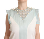 Sergei Grinko Multicolor Faux Pearl Sleeveless Shift Midi Dress