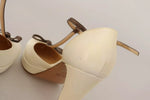 SERGIO LEVANTESI Off White Leather T-Strap Heels Sandals Shoes