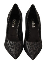 Sofia Black Leopard Leather Stiletto High Heels Pumps Shoes