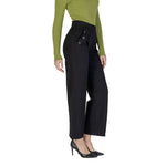 The Street One 378115 women’s palazzo trousers combine contemporary style with exceptional comfort. Made from a high-quality blend of 70% viscose, 25% polyester, and 5% elastane/lycra, these trousers offer a fluid fit that feels soft against the skin. The palazzo cut enhances the silhouette and provides freedom of movement, while the high waist and decorative button details on the sides add a touch of modern elegance. Perfect for both office wear and leisure time, these trousers are a must-have for any woman’s wardrobe seeking versatility and sophistication.