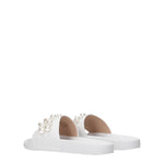The product with MPN GOLDIESMOSA887WHT and code F70203 leather in white is a slippers and clogs designed by Stuart Weitzman. It has features like front detail.