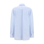 The Metis Shirt by The Row is crafted from premium cotton poplin, featuring a clean, refined silhouette that embodies the brand’s minimalist elegance. It has a front button closure, buttoned cuffs, and mother-of-pearl buttons, offering a subtle touch of understated sophistication.