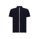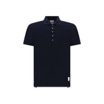 Cotton Polo Shirt by Thom Browne, classic collar, button fastening on the front, iconic branded tricolour band detail on the back, iconic branded signature patch in contrasting colour on the front.