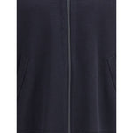 Virgin wool Cardigan by Thom Browne features a classic collar and front zipper closure for practical, modern comfort. The design features two side welt pockets and ribbed cuffs and hem for a detail-oriented finish. The iconic tone-on-tone horizontal band on the left sleeve adds a distinctive and recognizable touch to the garment. Perfect for those seeking a balance between elegance and contemporary casual style.