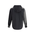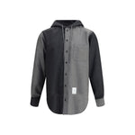 Thom Browne’s Hooded Shirt Jacket blends casual and tailored elements into a versatile garment with attention to detail. Featuring an adjustable drawstring hood and front button closure, it features a patch pocket on the chest and the iconic signature patch on the front. The asymmetrical hem adds a modern touch to a basic yet distinctive silhouette.