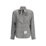 The Hunting Tweed Silk Twill Shirt by Thom Browne blends tradition with modernity in a sophisticated piece. Crafted from heritage Hunting tweed, a historic Scottish fabric, this shirt carries a century-old legacy while offering a contemporary fit, with lightweight silk that drapes effortlessly. The detachable bow at the collar adds an elegant touch, while the Thom Browne name tag and subtle grosgrain trim at the cuffs give it a distinctive edge. Pair it with the Hunting Tweed Backstrap Trousers for a refined look.