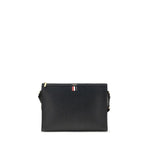 Thom Browne’s shoulder strap Pouch combines practicality and style with a distinctive touch. Featuring a top zipper closure, it features the iconic tricolor detail on the front and the signature embossed logo. The adjustable shoulder strap ensures versatile wearability, perfect for everyday elegance with a strong character.