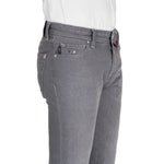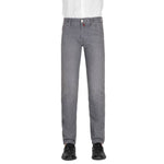 Tramarossa grey high-tailored jeans in slightly stretch cotton with white stitching details, regular fit, five-pocket model, grey suede patch with metal logo on the back