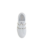 Valentino Garavani’s Rockstud Untitled Sneakers revisit the classic slip-on with a bold twist. Made of smooth leather, they feature a round-toe silhouette and a lace-free design for a practical and contemporary fit. The side panels are embellished with the iconic Rockstud studs, a distinctive symbol of the Maison. The flat sole ensures everyday comfort and refined urban style.