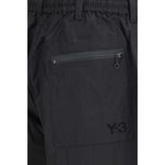 The cotton-blend cargo Bermuda Shorts by Y-3 reinterpret utility aesthetics with a contemporary edge. Featuring an elasticated waistband with drawstring and a button and zip closure, they combine comfort with functionality. Two large side pockets enhance the cargo-inspired design, while visible stitching adds a technical, distinctive detail. A versatile piece, ideal for dynamic urban styling.