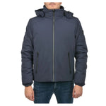 Yes Zee short down jacket in nylon softshell with goose down padding, removable hood, rubberized zip fastening and two side pockets