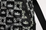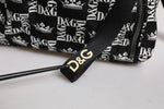 Gorgeous brand new, 100% Authentic Dolce & Gabbana nylon twill backpack in black. Logo and graphic pattern printed in white throughout. Tonal calfskin trim throughout. Carry handle at top. Twin adjustable padded webbing shoulder straps.