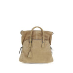 The 5AC soft medium Handbag by Margiela introduces a textural dimension to the Maison’s icon. Made of suede leather, it features a soft structure that folds into fluid pleats, creating a dynamic, on-the-go silhouette. Top handles and a removable shoulder strap enhance its versatility, adapting it to different occasions of use. The zippered top closure ensures practicality and protection, completing an elegant and contemporary design.
