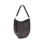 Ferragamo’s North-South Shoulder Bag, in its medium version, combines elegance and practicality. Made of soft hammered calfskin, it sits harmoniously on the body, ensuring comfort. The opening is secured by a metal zipper. A distinctive touch is provided by the option to extend the personalized jacquard shoulder strap – an iconic signature of the brand – by attaching a leather cord with a gold pendant. Finally, the brand’s logo is press-stamped on the front, discreetly sealing the authenticity and Ferragamo style.