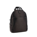 Calfskin Glam Slam Backpack by Margiela, round top handle, top closure by double-slider zipper, single-shoulder style with chain strap with leather inserts, maxi slit pocket at back, iconic contrasting embroidered brand logo patch at front, quilted and padded backpack design.