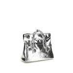 The 5AC East West Medium tote Bag by Maison Margiela is crafted from crinkled metallic leather in a structured trapeze silhouette. It features a fold-over top with exposed zip fastening, adjustable and removable crossbody strap, top handle, and silver-tone metal details. The signature numeric logo label on the front and protective metal feet complete this refined and modern design.
