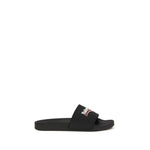 The rubber Slippers by Balenciaga are made entirely of rubber and feature an essential and contemporary slide design. The molded rubber insole ensures comfort and practicality, while the strap is embellished with the political campaign motif, an iconic and recognizable detail that gives the model a strong distinctive character and a bold aesthetic, perfect for completing casual and streetwear looks.
