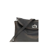 Balenciaga’s Rodeo small Shoulder Bag, designed for the modern man, is crafted from two-tone calfskin with a distressed effect, giving it a bold, contemporary feel. The messenger design is complemented by an adjustable and removable car-belt-style shoulder strap, complemented by a second leather shoulder strap for added versatility. Featuring a practical twist lock closure, it features a spacious main compartment, interior and exterior pockets, and functional details such as a removable key ring, side snaps, and brass feet. Antique silver hardware adds a distinctive touch.