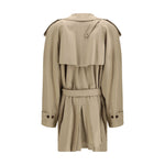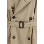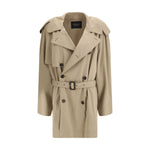 The belted double-breasted Trench Coat by Balenciaga is crafted in beige cotton and reinterprets a timeless wardrobe staple with a clean, contemporary aesthetic. The double-breasted button fastening and notched lapels create a refined, structured silhouette, while the waist belt enhances the shape with a functional touch. Long sleeves complete the design of an outerwear piece conceived for sophisticated, timeless style.