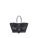 Balenciaga’s Bel Air medium Shoulder Bag is a spacious and functional accessory with a versatile pouch design. It features two handles for convenient carrying and the Balenciaga Paris logo embossed with silver lamination on the back, attesting to its authenticity. Enhanced with antiqued gold hardware and a removable key ring with double spiral loop, this bag is designed for organization: it includes snaps on the sides to modulate the shape, a swivel closure, and belts on the front with engraved logos. The interior features a large front pocket, an open main compartment, two interior zippered pockets and two interior flat pockets, offering practical solutions for every need.