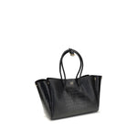 Balenciaga’s Bel Air medium Shoulder Bag is a sophisticated accessory in crocodile-effect calfskin leather. A versatile carry all, it can be carried either on the shoulder or in the hand thanks to the two handles connected by a clip. The embossed Balenciaga Paris logo with lamination stands out on the back, while antiqued gold hardware and side snap buttons add character. The swivel closure, with engraved logo, provides security, while the interior is organized with a large compartment, front pocket, two zipper pockets and two flat pockets. A removable key ring with double spiral loop completes the design.