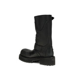 Venom Boots by Balenciaga are a bold and contemporary interpretation of urban style. Featuring an ultra-round toe and a 20 mm curvature, they stand out for their worn-in effect that gives a worn-in, gritty look. Belt-inspired straps with adjustable buckles add an industrial touch, while the Balenciaga logo and Parisian address 10 AV George V are embossed on the upper as a hallmark. Complemented by an engraved logo plaque on the side of the sole and a thick notched rubber sole, they combine rugged aesthetics and functionality.