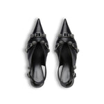 – Composition: 100% calf leather – Inner: Leather – Insole: Leather – Sole: Leather – Pointed toe – Heel 7 cm – Open back – Decorative buckles – Stud embellishment – Made in Italy – Gender: WOMEN –