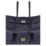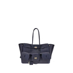 The medium Bel Air Shoulder Bag by Balenciaga combines elegance and functionality in a modern design. Carried by hand or on the shoulder thanks to the two handles, it is embellished with the Balenciaga Paris logo embossed with silver lamination and with antiqued metal details. The removable key ring and the twist lock with belts give character and practicality. Complete with a large front pocket, an open main compartment and internal pockets with and without zips, it offers impeccable organization for all your daily needs.