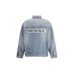 The regular-fit denim Jacket by Balenciaga reimagines classic workwear with a bold and contemporary attitude. The cotton construction shapes a regular silhouette with a flat collar and front button fastening, while chest pockets and slash pockets ensure functional balance. Balenciaga-engraved denim buttons and adjustable waist tabs add character and versatility, finished with the masking tape motif on the back as a distinctive graphic signature.