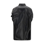 The Tucked Sleeves Shirt by Balenciaga reimagines the classic shirt with a bold and refined edge. Crafted from shiny smooth lambskin, it stands out for its innovative short sleeves tucked-inside effect, creating unexpected volume and structure. A traditional shirt collar, six-button front closure, and chest patch pocket ground the design in tailoring, while the rounded hem adds fluidity. A statement piece that reflects Balenciaga’s experimental spirit and modern, unconventional elegance.