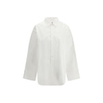 The cotton shirt by Balenciaga reinterprets classic tailoring through a contemporary construction and a bold oversized fit. The front button closure and long sleeves with buttoned cuffs are balanced by clean shoulder lines, while the side ties add an unexpected detail. The rounded hem finishes the piece with an effortless and distinctive attitude.