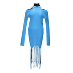 Bottega Veneta Ribbed Fringe Dress Stretch halterneck Checkered back Fully lined Lightweight ribbed fabric Dry clean only Fringed trim Elastic fit 57% cotton, 43% silk Made in : Italy Brand Sku : 631326 VKWM0 Internal...