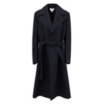Double Cotton Canvas Trench Coat in Bottega Veneta Blue. Front fastening with covered buttons, removable belt, two side welt pockets, Ulster collar, small vent on the back, unlined.