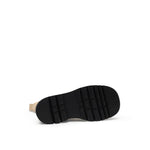 Beige and Black Leather Lug Ankle Boots by Bottega Veneta. Maxi black lug sole, round toe, brushed leather, contrasting elastic side bands, and shoehorn tabs on the front and back for comfortable wear.