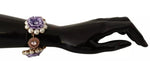 Gorgeous 100% Authentic brand new with tags DOLCE & GABBANA Bracelet with large floral decorations. The baroque model was decorated with hand-painted enamel buds. Such details successfully coexist with mother-of-pearl cabochons and sparkling crystals of different shades and sizes. The openwork accessory is made of golden hypoallergenic brass, which will not fade for a long time.