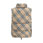 Burberry’s Check vest Down Jacket is an iconic garment made of water-repellent Burberry Check fabric with a regular fit and down and goose down filling. Featuring a double-slider zipper closure, it features a packaway hood with drawstring, zippered side pockets and adjustable hem. The chest features a silicone applique with the Equestrian Knight Design, a symbol of the brand’s timeless elegance.