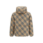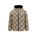 The Detachable Sleeve Puffer Jacket by Burberry blends versatility with heritage. Filled with goose down and insulating fibres, the design features detachable sleeves that transform it from a jacket into a gilet. Cut to a relaxed fit, it is enhanced by a detachable drawcord hood and a collar lined in Burberry Check wool, a house signature. A two-way zip closure, side zip pockets, drawcord hem, and storm cuffs complete the look, finished with an appliquéd Knight stamp at the sleeve – an archival motif from the 1980s.