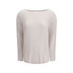 The crew-neck Sweater by Allude is crafted from pure cashmere and defined by fine vertical rib-knit detailing that subtly enhances the silhouette. The softness of the yarn wraps the body in lightweight, refined comfort, while the long sleeves and clean crew neckline make this piece timeless and versatile, ideal worn on its own or layered for a polished look.