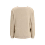 The crew-neck Sweater by Brunello Cucinelli combines the softness of cashmere with the rare luxury of vicuña, creating a piece of exceptional refinement. The dropped shoulder and wide sleeve define a relaxed silhouette that conveys both comfort and sophistication. The purity of its lines highlights the superior quality of the materials and the artisanal mastery that embodies the spirit of the maison.